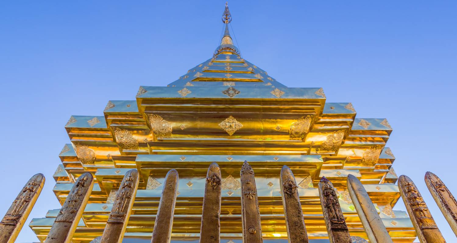 Enjoy a lively start to the day’s activities at the fragrant and vibrant Chiang Rai morning market and then make a brief stop at the Wat Phra Kaew temple. After, delve deeper into local culture at the Hill Tribe Museum and Education Centre, where the lifestyles of the area’s mountain peoples are explained along with the challenges to their survival. Continue by road to Tha Ton and enjoy lunch before heading to the ancient city of Chiang Mai. On arrival, visit Wat Phra That Doi Suthep, one of the most revered temples in the country. This sacred location is at the top of a mountain from where you can appreciate stunning panoramic views over the city. To reach the temple you can either climb a 309-step naga staircase or take the cable car. Overnight in Chiang Mai Breakfast and lunch included -